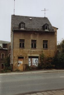 In dieser Ruine Neustadt Nr.15, welche 2004 abgerissen wurde, befand sich das Lebensmittelgeschäft von Küchler, Emma geb. Uhlmann, der Schwester meines Ururgroßvaters Max Hugo U. Im wahrsten Sinne des Wortes: ein 'Tante Emma Laden'. Im Hinterhof, hier nicht einsehbar, befand sich wie schon erwähnt die erste Klempnerei unserer Familie von Friedrich Anton Oscar U. (Vater von Emma).
