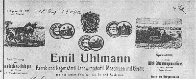 Im Jahre 1909 gründete Carl Emil Uhlmann ein weiteres Unternehmen. Er betrieb den Handel und Service mit Landmaschinen. Der Firmensitz befand sich in Reichenbrand (heute Anton-Erhardt-Str.; Autohaus KIA). In Folge seiner Errichtung des nachfolgend beschriebenem Gasthof und nunmehr Besitzer und Betreiber des Selbigen verkaufte er dieses Geschäft im gleichen Jahr 1912. Fortan firmierten die Nachfolger Herr Bernhardt & Herr Rudolph, beide aus Reichenbrand stammend, mit 'Emil Uhlmann Nachf.'
