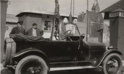 Die Tankstelle von Herbert Walther Uhlmann in Siegmar. Selbige be-fand sich am Platz der heutigen Trabant-passage in Siegmar. Zur Firma gehörte noch auf der gegenüber-liegenden Strassenseite ein Fahrradgeschäft mit weiteren Angeboten: