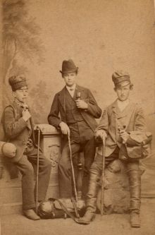Der Bruder meines Urgroßvaters (Mitte) Carl Emil Uhlmann (geboren 1861 in Schönau; gestorben ca.1935 in Leipzig) als junger Bursche auf der Wanderschaft.