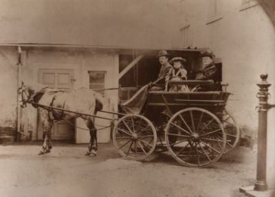Nochmals Carl Emil Uhlmann mit seiner Familie vor dem Eingang seiner ersten 1884 gegründeten Firma.