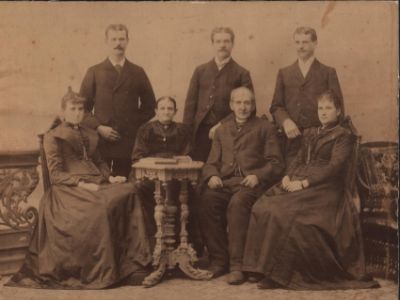 Die Familie meines Ururgroßvater Uhlmann Friedrich Anton Oscar (vorn 2.re.). Mein Urgroßvater Max Hugo hinten rechts als Jung-geselle. Hinten links sein ältester Bruder Carl Emil.